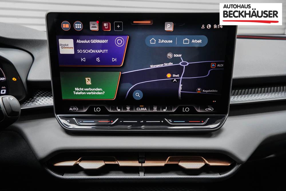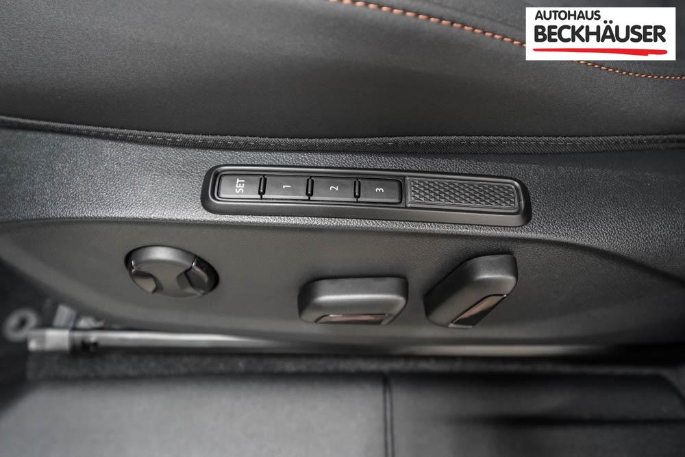 Beifahrersitz höhenverstellbar, Fahrersitz höhenverstellbar, Sport-Lederlenkrad, Lendenwirbelstütze elektr. vorne, Mittelarmlehne vorne, Sportsitze vorne, Gepäckraumabdeckung, geteilt umklappbare Rücksitzlehne, Lenkrad höhenverstellbar, Sitzbezug Dinamica, Ambiente-Beleuchtung, Elektrisch verstellbare Vordersitze, Beheizbares Lenkrad, Multifunktionslenkrad, Isofix, Isofix Beifahrersitz, abgedunkelte Scheiben, 20 Zoll Alufelgen Hadron Copper Z0E, Dachreling schwarz, Außenspiegel in Wagenfarbe, Stoßfänger in Wagenfarbe, Türgriffe in Wagenfarbe, ABS, Alarmanlage, Außenspiegel elektrisch einstell-/anklappbar, Fensterheber elektrisch, Kopfairbags, Nebelscheinwerfer, Schiebedach, Seitenairbags, Servolenkung, Sitzheizung vorne, Adaptive Fahrwerksregelung DCC, ESP, Wegfahrsperre, Zentralverriegelung mit Funk, Außenspiegel beheizbar, Beifahrerairbag, Fahrerairbag, Parkpilot hinten, Parkpilot vorne, Reifendruckkontrolle, Head-up Display, Regensensor, Lichtsensor, Digital Cockpit, Tempomat Abstand ACC, Notbremsassistent, Spurhalteassistent, Totwinkelassistent, Verkehrszeichenerkennung, Matrix-Beam LED-Scheinwerfer, LED-Tagfahrlicht, Pannenset, Rückfahrkamera, Park-Assistent, Panoramadach, Elektrische Heckklappe inkl. Virtual Pedal, Keyless Advanced - Schlüsselloses Schließ- und Startsystem, StartStopSystem, Innenspiegel automatisch abbl., Müdigkeitswarnsystem, Notrufsystem, Schaltwippen, Klimaautomatik 3-Zonen, 360-Grad-Kamera, Android Auto, Apple Carplay, Freisprecheinrichtung, Induktionsladestation, Sprachsteuerung, Touchscreen, USB Typ-C, Radio DAB, Bluetooth, Bordcomputer, Navigationssystem, Vorbereitung für Anhängevorrichtung, Fahrersitz mit Memory, Emergency Assist, Stauassistent, Wired and Wireless App-Connect, 5 Jahre bis max. 100.000km Herstellergarantie, variabler Ladeboden, Ausweichunterstützung mit Abbiegeassistent, LED-Rückleuchten,